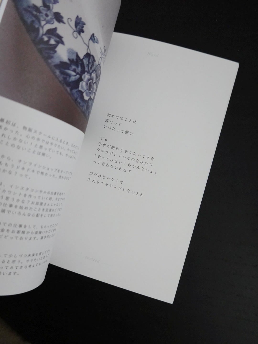 Vol.1のタイトルは"talking to myself"で、自己探求や内省をテーマとなっております。自分と向き合うワークや、excitedとgratefulのそれぞれテーマに分かれた言葉たち(こちらはストーリーズの言葉を再編集しております)など、この本を手にすることで、自分のことを大事にすること、自分と話すこと、そんなことを思い出すキッカケやお守りのような本になれば幸いです。